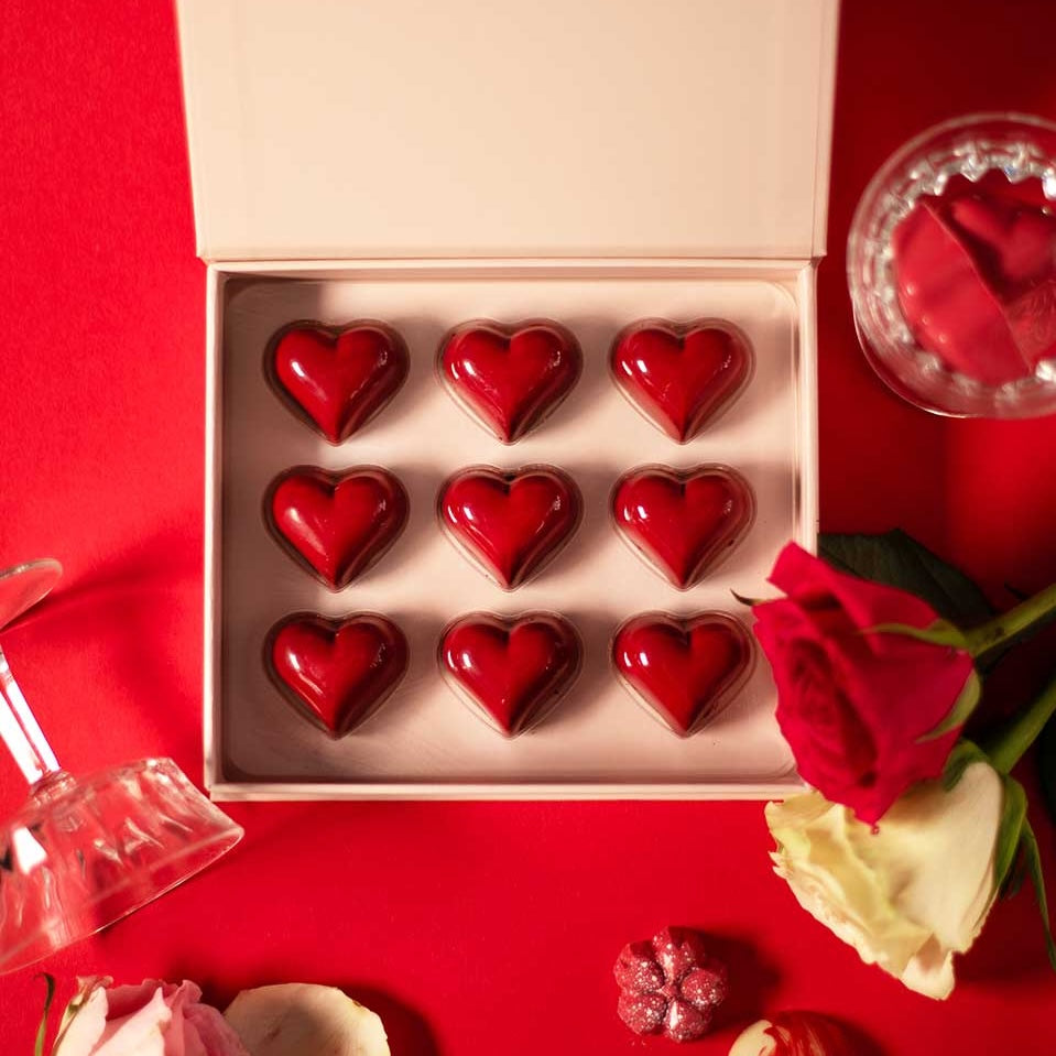 Hjerteformet konfekt i mørk sjokolade – den perfekte romantiske gaven